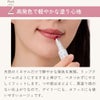 4)石けんオフ シリコンを配合していないため、石 けんで簡単落とせます。摩擦によ るダメージを防ぎ、唇への負担も 最小限に抑えます。