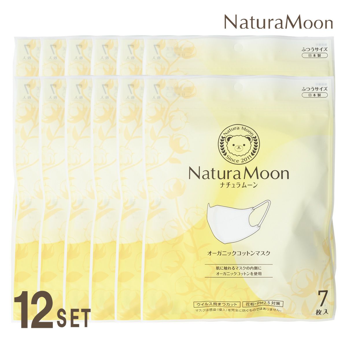 他の画像を見る (12個セット)NaturaMoon(ナチュラムーン) オーガニックコットンマスク ふつうサイズ 7枚入 定価 ¥ 12,540 のところ 当店特別価格 ¥ 11,550 税込 カートに入れる お気に入りに登録する