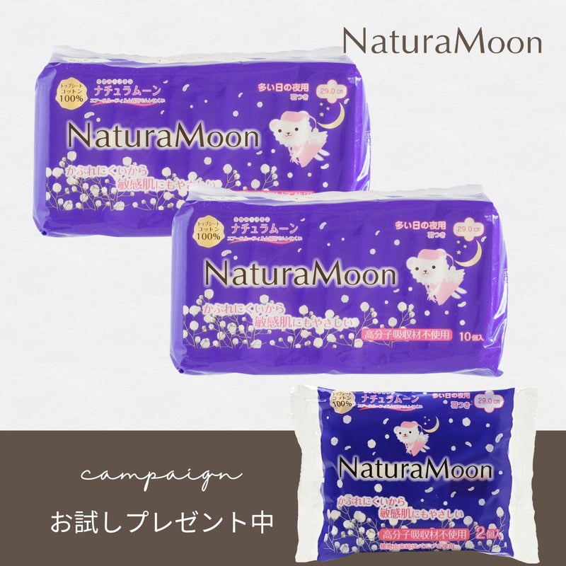 【お試しパック付き】【2個セット】ナチュラムーン 生理用ナプキン [多い日の夜用] 羽付きトップシートコットン100%