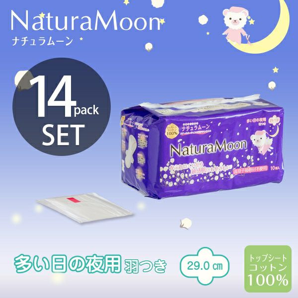 他の画像を見る NaturaMoon(ナチュラムーン) 生理用ナプキン 夜用×14パックセット(多い日の夜用羽つき7パック、多い日の夜用羽なし7パック) 定価 ¥ 8,162 のところ 当店特別価格 ¥ 7,753 税込 カートに入れる お気に入りに登録する