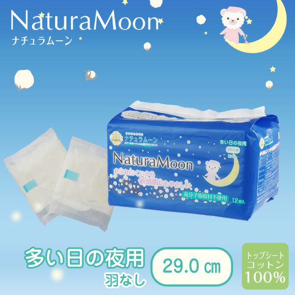 他の画像を見る 【定期便 送料無料】NaturaMoon(ナチュラムーン) 生理用ナプキン 夜用×6パックセット(多い日の夜用羽つき3パック、多い日の夜用羽なし3パック) 1回あたり ¥ 3,323 税込 詳細を見る お気に入りに登録する