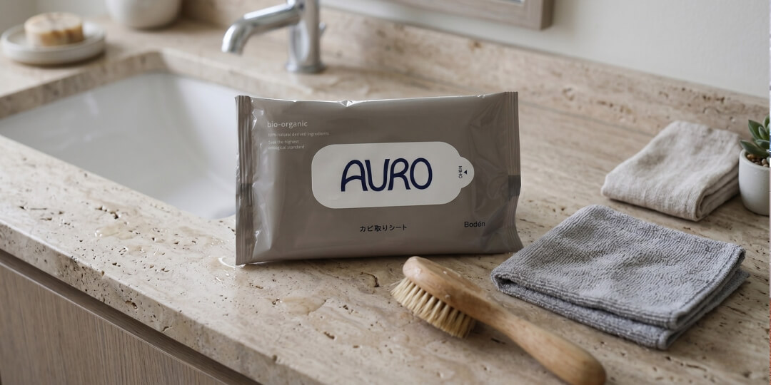 「あ、こんなところにカビが…」と気づいた瞬間、重い腰を上げずに済むのがAUROカビ取りシートの凄さ。厚手のシートを取り出してサッと拭くだけで、除菌から防カビまで一気に完了します。塩素不使用の天然成分100%だから、二度拭きや洗い流しは一切不要。